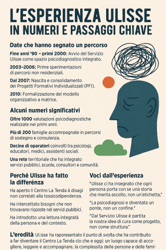 Ulisse ha rappresentato il punto di svolta che ha contribuito a far diventare il Centro La Tenda ciò che è oggi: un luogo capace di accogliere, leggere e accompagnare la complessità delle persone e delle famiglie, ben oltre i confini della dipendenza.