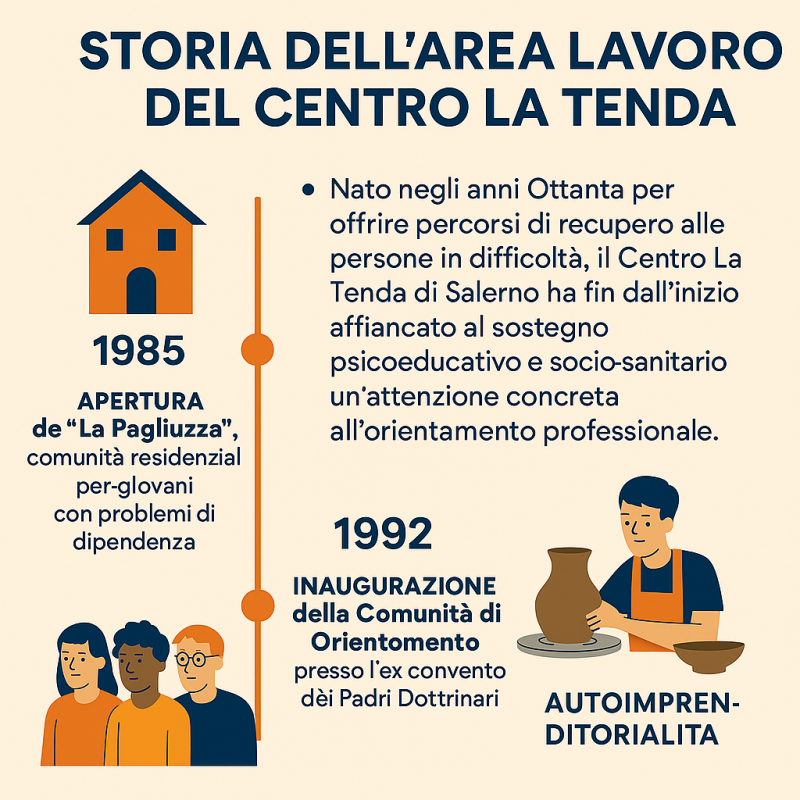 Nato negli anni Ottanta per offrire percorsi di recupero alle persone in difficoltà, il Centro La Tenda di Salerno ha fin dall’inizio affiancato al sostegno psicoeducativo e socio-sanitario un’attenzione concreta all’orientamento professionale.